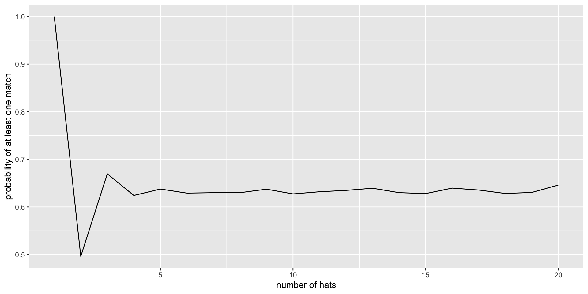 map(c(1:20), hat_match_prob, reps = num_iter) |>